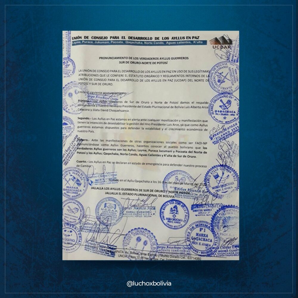 En unidad con el pueblo boliviano defenderemos nuestros recursos naturales, soberanía y democracia. Agradecemos el contundente respaldo de la Unión de Consejo para el Desarrollo de los Ayllus en Paz del Norte de #Potosí y sur de #Oruro.
