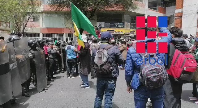 #LaPaz | Marcha del magisterio urbano llegó hasta cercanías del Ministerio de Educación que se encuentra resguardado por efectivos policiales https://t.co/mpoo8386SQ