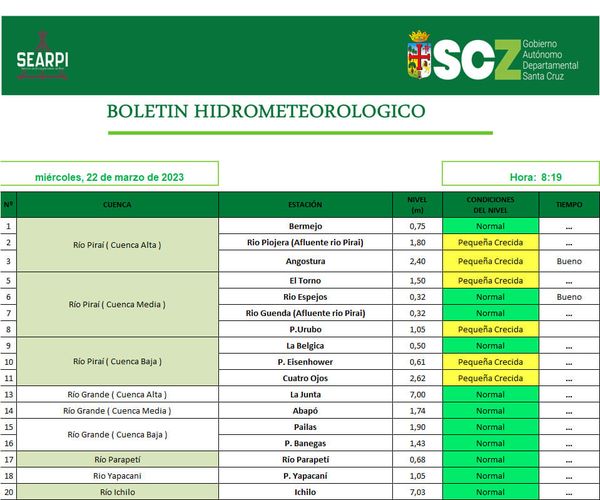 #Searpi anuncia crecida extraordinaria en el Río Piraí, zona de la Angostura se sugiere tomar precaución en #SantaCruz