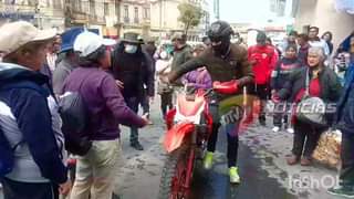 Un motociclista y su pareja querian pasar por la avenida Montes, sin embargo fueron arrinconados por los maestros, hubo empujones y reclamos.