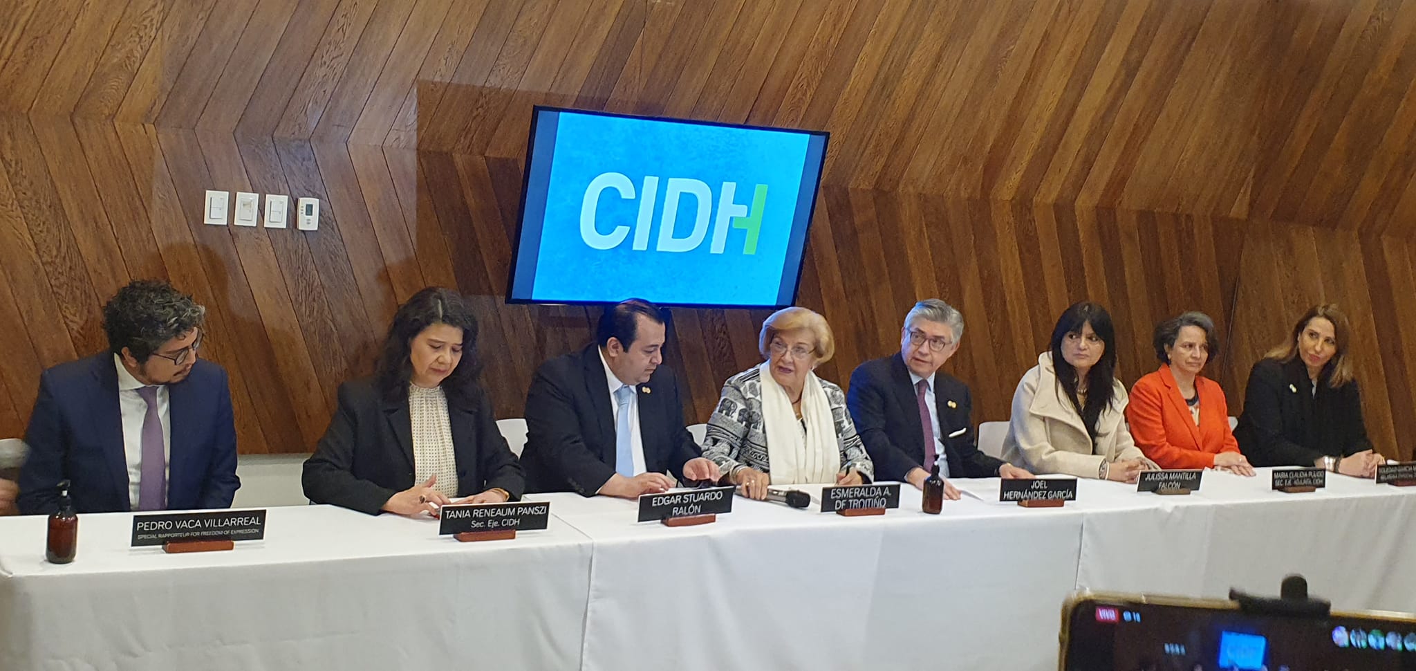 El Relator de la CIDH para Bolivia Joel Hernández García junto a siete comisionados. Dijo que hoy lunes 27 de marzo la Comisión de la CIDH inicia una visita in loco a Bolivia y que el objetivo de esta visita es realizar la observación «in situ» de la situación de los derechos humanos en Bolivia con un » énfasia especial» en la institucionalidad democrática, los desafios de acceso a la justicia y a las garantías judiciales, el acceso a los derechos económicos culturales ambientales y la discriminación respecto de poblaciones en situación histórica de vulnerabilidad para ello las delegación de la CIDH se desplegará en las ciudades de La Paz, Sucre, Cochabamba y Santa Cruz el propósito es reunirse con todas las autoridades de gobierno, organizaciones de la sociedad civil, activistas, personas de derechos humanos, gremios, personas privadas de libertad y otros. No tendrán contacto con la prensa institucional e individual hasta el próximo viernes 31 de marzo fecha en la cual darán un informe preliminar detallado de su visita en Bolivia. Así mismo, el Relator de la CIDH para Bolivia Hernández, aclaró que esta visita de la Comisión de la CIDH es distinto a la mesa de seguimiento al informe del GIEI sobre los hechos de violencia ocurridos en el 2019.