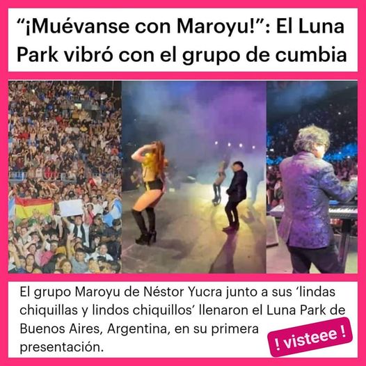 El grupo boliviano de cumbia, Maroyu de Néstor Yucra, causó sensación en el primer concierto que brindo en el Luna Park, 🎼🎵🎵 en Buenos Aires, Argentina, el 24 de marzo. Acompañado de sus ‘lindas chiquillas’ y ‘lindos chiquillos’, la agrupación llenó este emblemático lugar donde donde se presentaron los mejores artista del mundo.