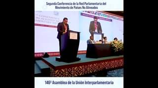 Segunda Conferencia de la Red Parlamentaria del Movimiento de Países No Alineados en Bahréin, donde denunció la injerencia y abusos de potencias que provocan conflictos, y promovió la soberanía y la autodeterminación para construir un mundo más justo y equitativo.=> Recibir por Whatsapp las noticias destacadas