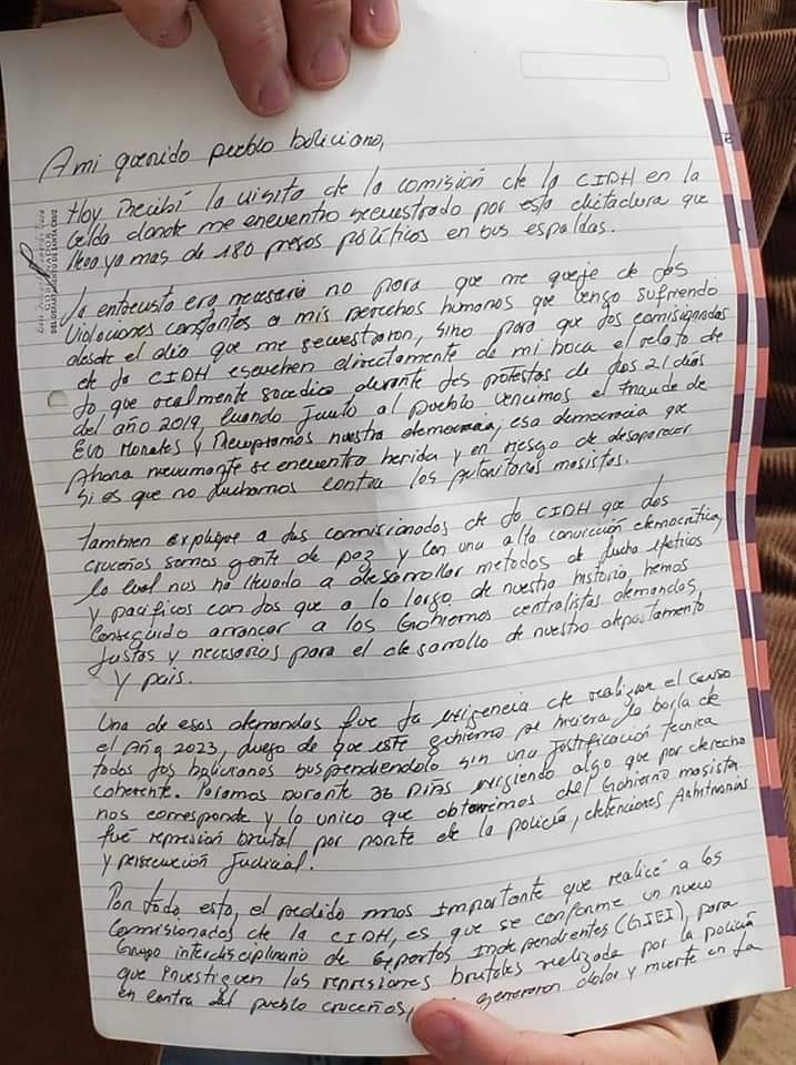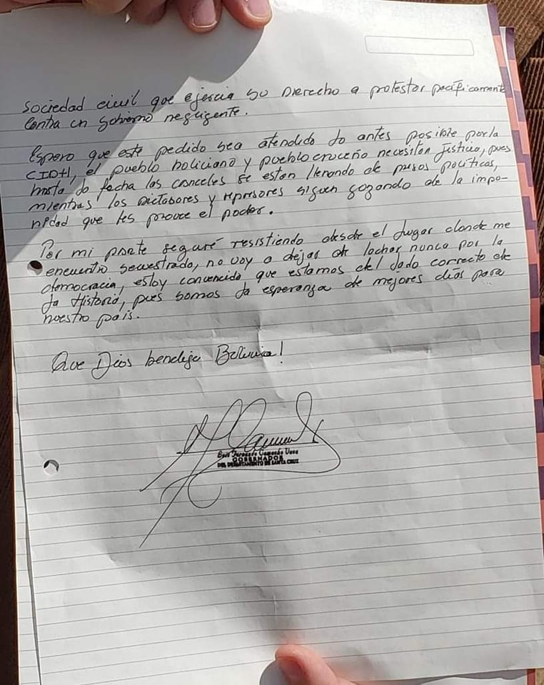 Luis Fernando Camacho en una carta pide a la #CIDH un grupo de expertos independientes para que investigue la represión violenta a los cruceños