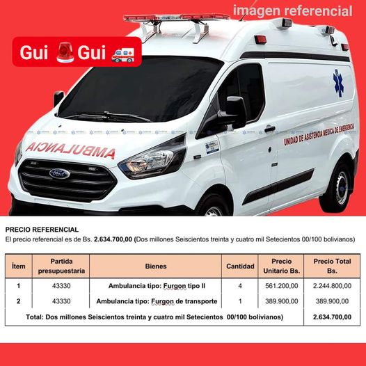 🔎Cuatro (4) ambulancia van costar 562.200 bolivianos ,