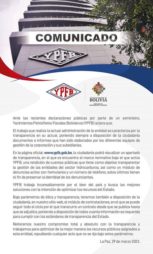 #COMUNICADO: YPFB rechaza denuncias de ex Ministro Carlos Romero y ratifica que la administración de la estatal petrolera es » transparente».