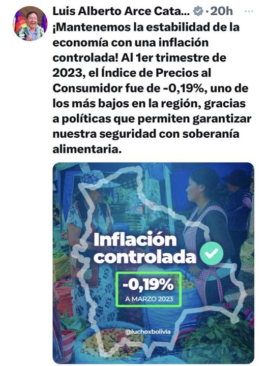 -0,19% la inflación en Bolivia en los tres primeros meses del año. El presidente Arce destaca la estabilidad de precios en el país, en un contexto internacional inflacionario