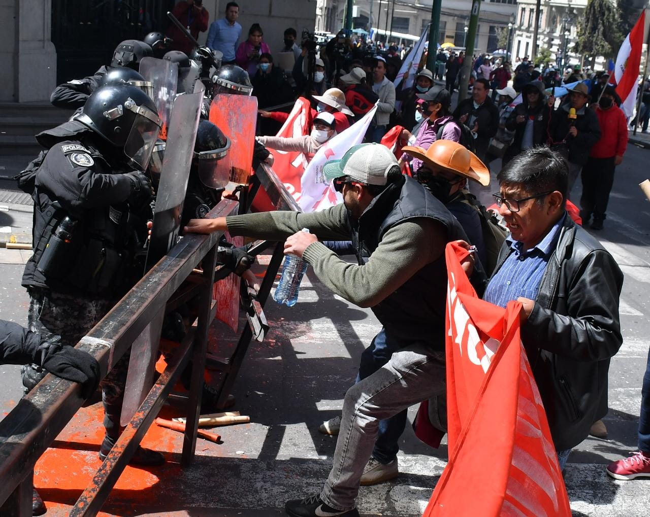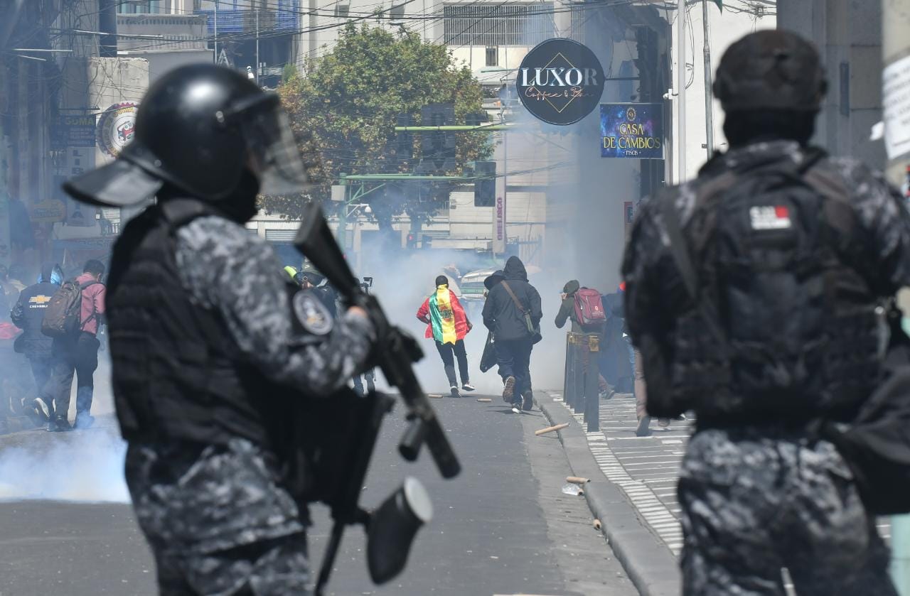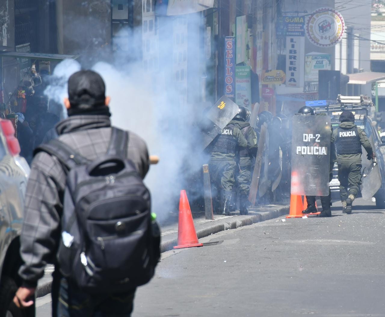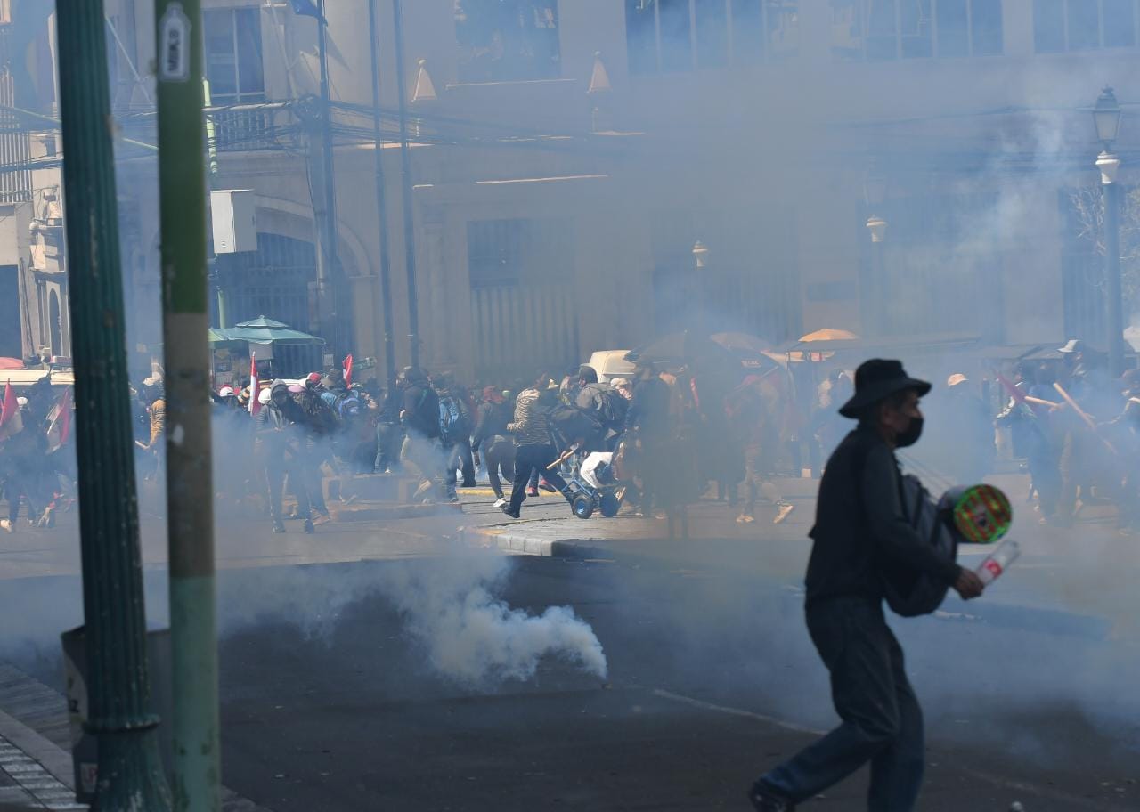 Presidencia del Estado a solo dos cuadras de Plaza Murillo, logrando ingresar posteriormente y desatando la gasificación para desalojarlos del lugar.FOTO/Daniel MIRANDA@APGNoticiasBo