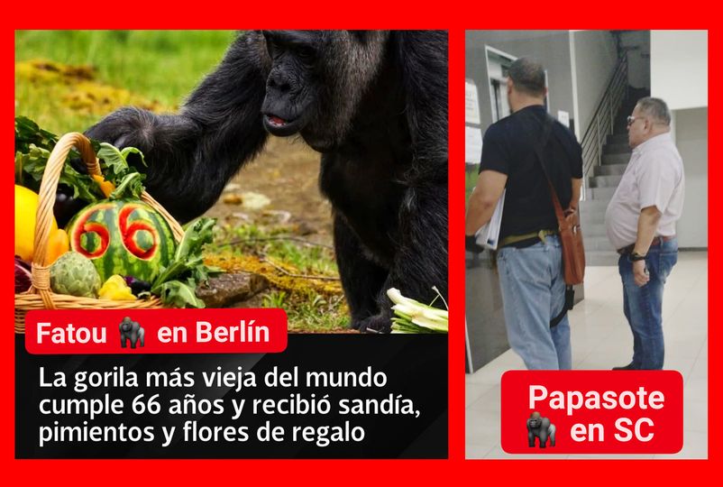 ES EL CUMPLE DE FATOU 🦍 ¿ Habrá celebrado el cumple el Vice Alcalde ? Fatou 🦍 llegó al zoo de Berlín en Alemania cuando tenía dos años era 1959. Aunque su fecha de nacimiento no se sabe exactamente. Papasote 🦍 el gorila del Mario Centellas llegó hace unos meses a la oficina de la alcaldía en la plaza desde que el cafetero le aseguró una tunda.