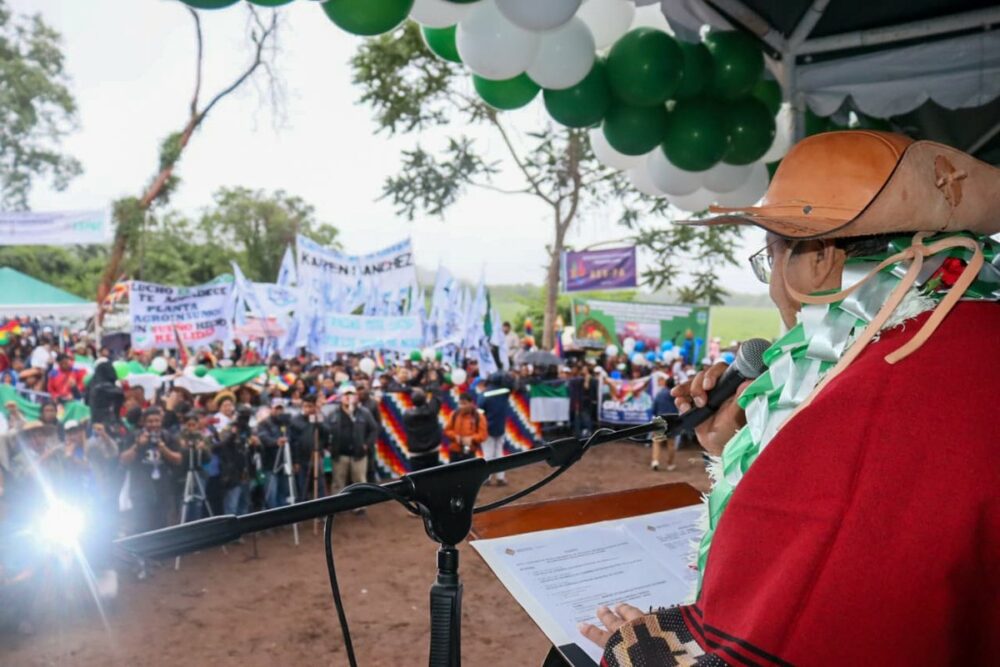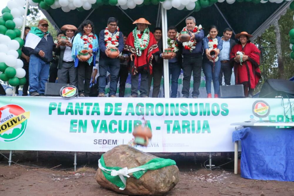 En el marco de nuestra política de industrialización con sustitución de importaciones, en Yacuiba, #Tarija, colocamos la piedra fundamental para la construcción de una moderna Planta de Agroinsumos, que garantizará la seguridad con soberanía alimentaria en el país. ¡Felicidades! https://t.co/J2kpmIFmoJ