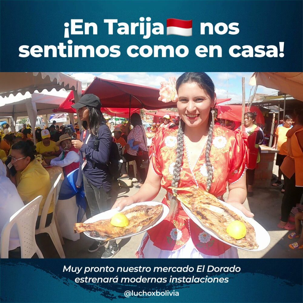 ¡En #Tarija nos sentimos como en casa! Al visitar esta hermosa tierra, no podíamos dejar de comer un exquisito Pacú en nuestro querido mercado «El Dorado», que pronto estrenará una nueva y moderna infraestructura, como parte de un compromiso que cumplimos con el pueblo tarijeño. https://t.co/X7w4iHmPdU