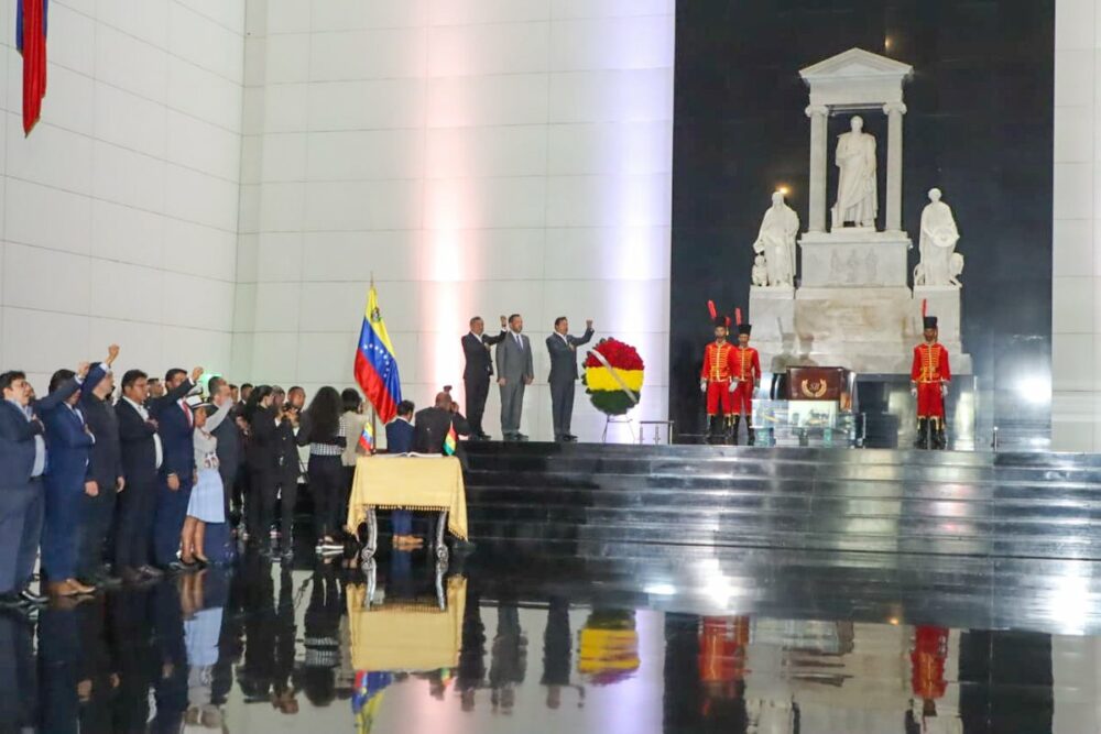 Visitamos el Panteón Nacional de #Venezuela🇻🇪 para rendir honores, con una ofrenda floral, al gran libertador #SimónBolívar, cuyo legado sigue vivo en la lucha por la construcción de una Patria Grande unida, libre, digna, soberana y con justicia social. https://t.co/KCfNotS34Q
