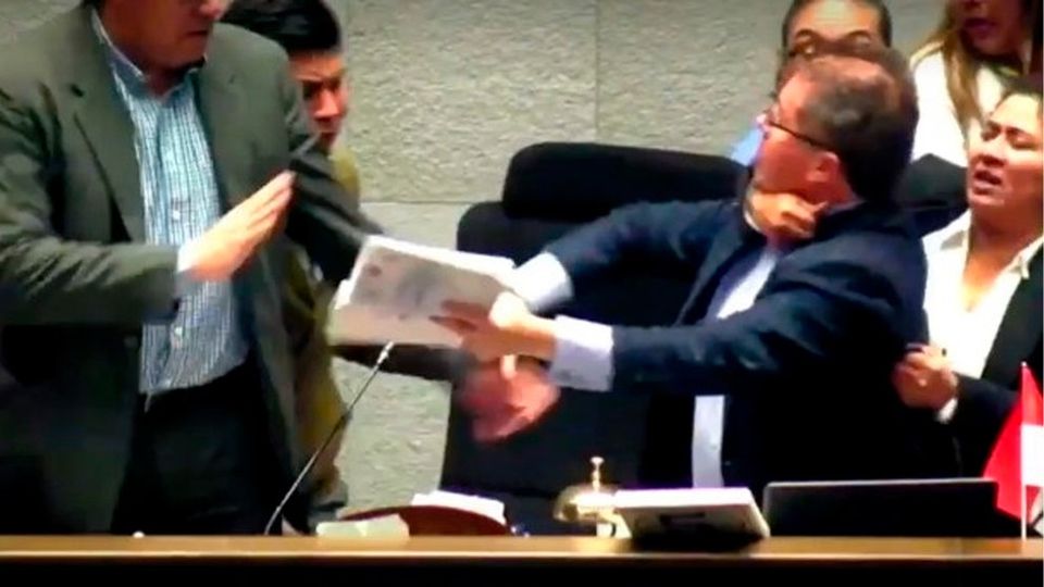 Incidentes con empujones y algunas pataditas por debajo tras aprobación en grande de Ley del oro, hay receso hasta las 14:00 hrs