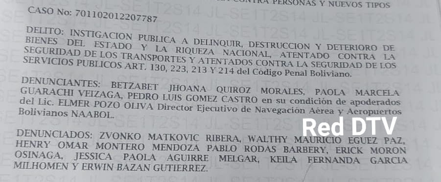 diciembre en el aeropuerto Viru Viru, cuando el Gobernador fue aprehendido en un operativo policial cuestionado por opositores y simpatizantes al gobernador, en aquella oportunidad la ciudadanía y autoridades locales de apersonaron a la terminal aérea internacional a objeto de corroborar si Luis Fernando Camacho se encontraba en el lugar.Entre los investigados se contabilizan 3 Asambleistas: Zvonko Matkovic, Paola Aguirre, Keila García. Además de diputados y senadores: Walthy Egüez, Erwin Bazan, Henry Montero, Erick Morón y un ciudadano de nombre Pablo Rodas Barbery, al momento solo se tiene confirmada la citación a declarar del diputado Walthy Egüez a las 10 mañana y la Asambleista Paola Aguirre a las 11 de mañana el día miércoles 26 de abril ante el fiscal Osvaldo Tejerina en instalaciones de la Felcc, a denuncia del Director de Naabol, Elmer Pozo.