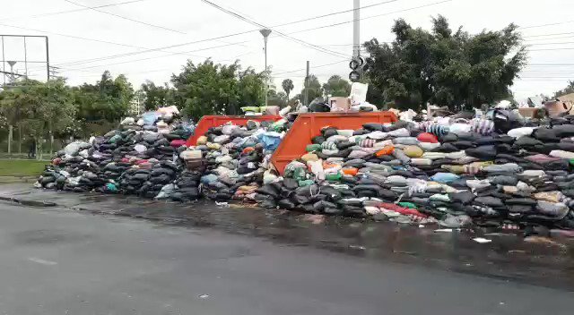 Hoy es el octavo día de bloqueo en K’ara K’ara y en Cochabamba se forma una «montaña» de basura, como se observa por el estadio Félix Capriles.