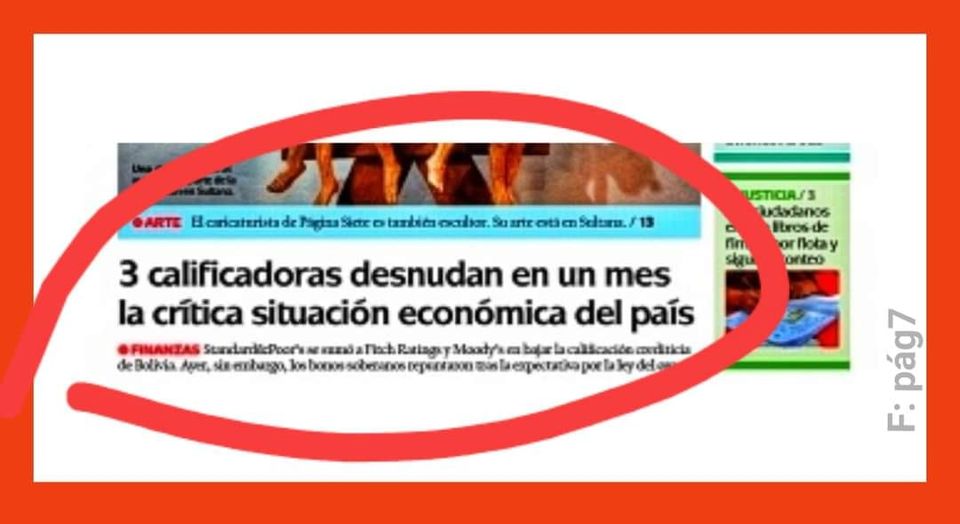 EL PROBLEMA ES EL 🇧🇴 Y LOS QUE LO MANEJAN Para que no andemos buscando tres pelis a la leche 🥛 y culpando al sistema financiero 💲. Fitch Ratings, Moody´s y Standar&Poors alertan el deterioro de varios indicadores, la caída de las Reservas Internacionales, las tensiones políticas que arriesgan la estabilidad. Estos avisos 🖥️ se vienen dando hace rato. En un mes tres agencias internacionales y una revista internacional han bajado la calificación de riesgo y ponen a la economía boliviana y al modelo económico, social y comunitario al límite al advertir el deterioro de varios indicadores que ponen en riesgo la estabilidad. Mientras el Ministerio de Economía 📈📉 lo niega The Economist y su informe lapidario