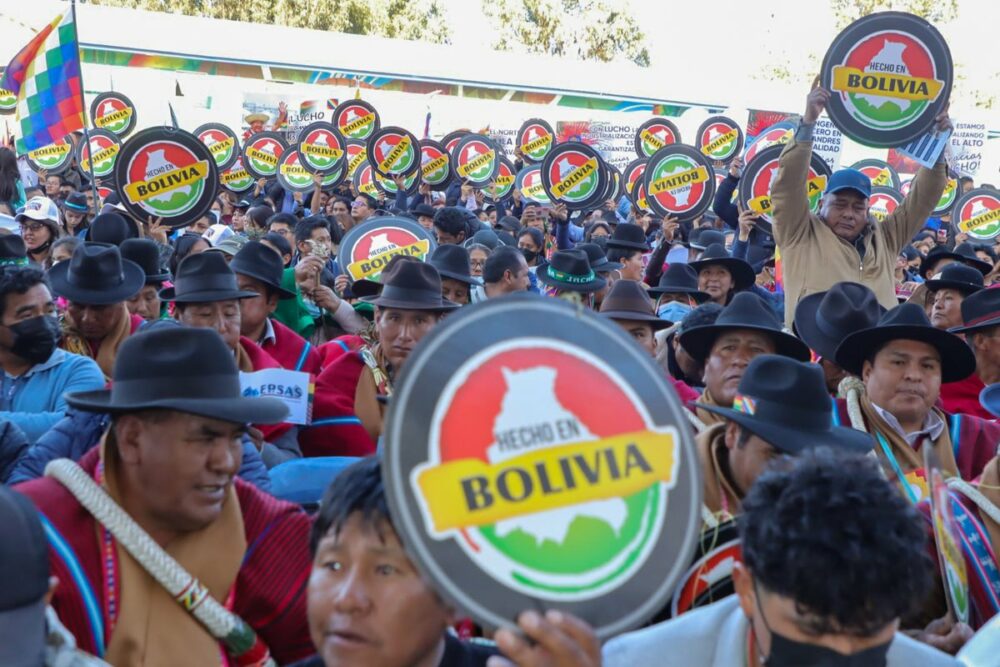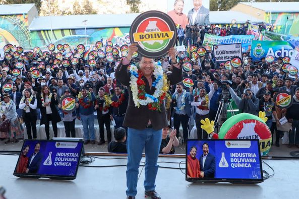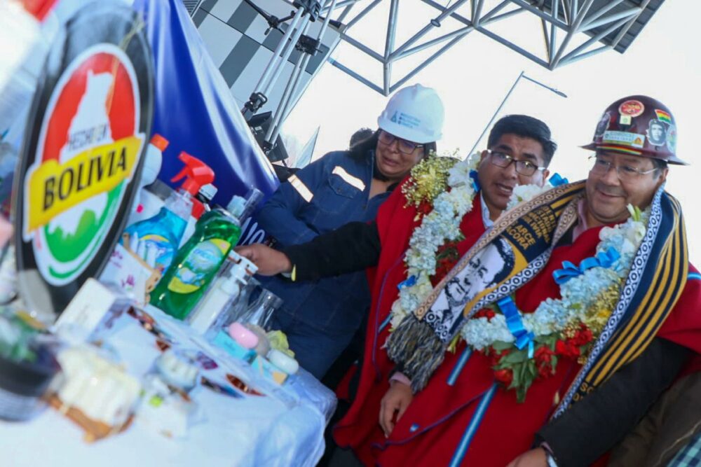 (Hilo) En un día histórico para el país, creamos la Empresa Pública Productiva Industria Boliviana Química #IBQ con una inversión de Bs3.409 millones. Ingresamos a la era de la industrialización horizontal y vertical para producir desde la materia prima hasta el producto final. https://t.co/M6JhNohq9U