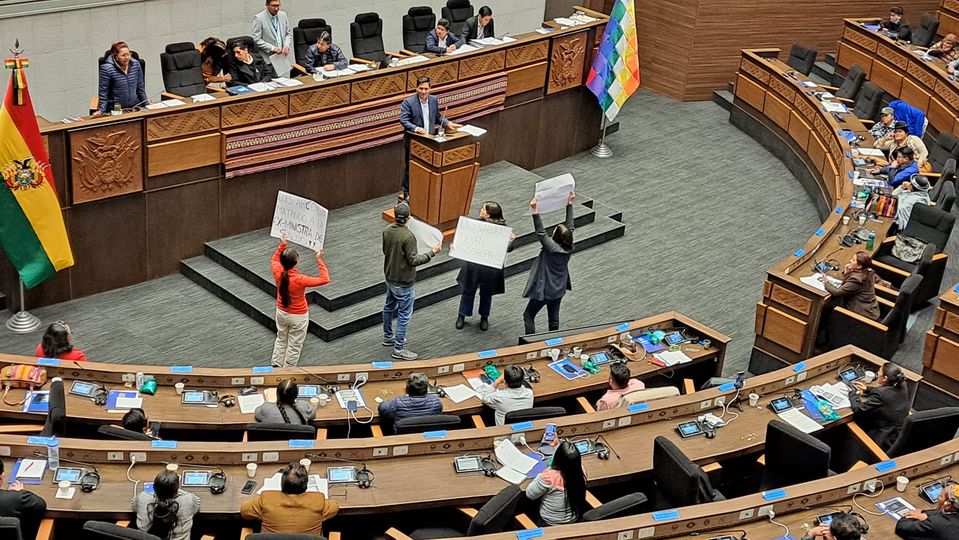 Al concluir de responder las preguntas el ministro de salud los diputados de cc bajaron con letreros hasta la testera en los cuales cuestionaban un año de retraso del informe, cuestionamientos por atentar contra la salud de Eydi Roca y otros pidiendo la renuncia del ministro.
