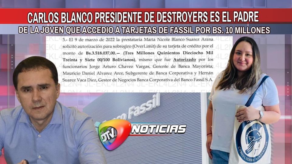 Carlos Blanco presidente del Club Destroyers es el padre de Maria Nicole Blanco Suárez Arana quién accedió con un sueldo de tan sólo Bs. 10.000 a 4 sobregiros (OverLimit) del Banco Fassil por un monto de casi Bs. 10.000.000 ($us. 1.5000.000).