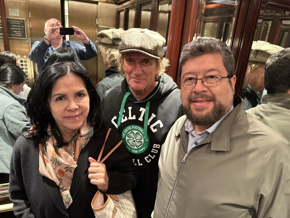 Volviendo del médico al hotel reconocí en el ascensor a Rod Stewart, un ídolo de la música en inglés.