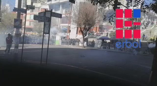 #LaPaz | Las movilizaciones retornan a la avenida Arce. El magisterio urbano dispara petardos de alta potencia y la Policía usa gas pimienta y pistolas de paintball pic.twitter.com/m7kGYbLTGu