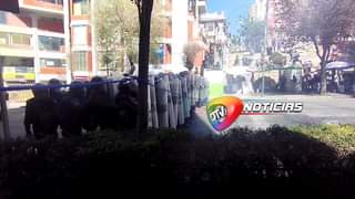Los Maestros Urbanos de Bolivia, nuevamente en cercanías del Ministerio de Educación, lanzaron petardos contra efectivos policiales, lo que derivo a qué los mismos respondieran con balines de pintura contra ese sector. Además la policía utilizó gas pimienta para dispersar a los profesores movilizados, los cuales cumplen ocho semanas de sus medidas de presión ante la falta de atención a sus demandas.