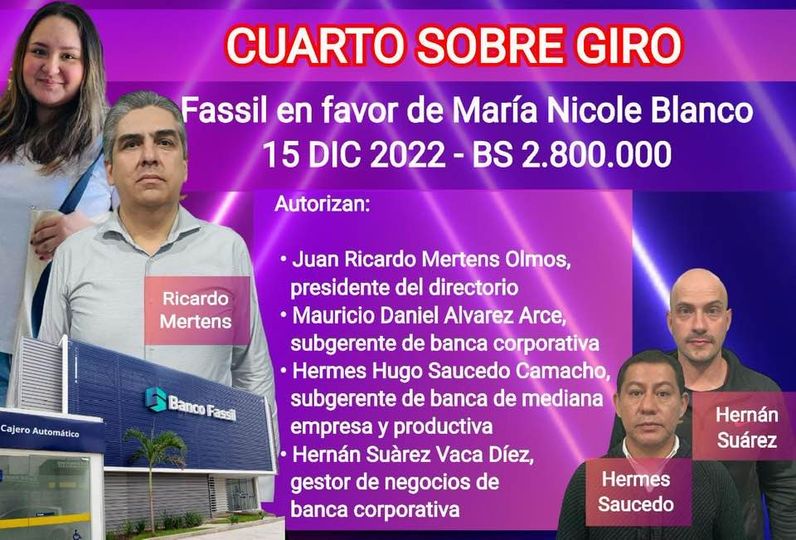 Ellos autorizaron el cuarto sobregiro del ex Banco Fassil en favor de la joven de 18 años, por Bs 2.8 millones.