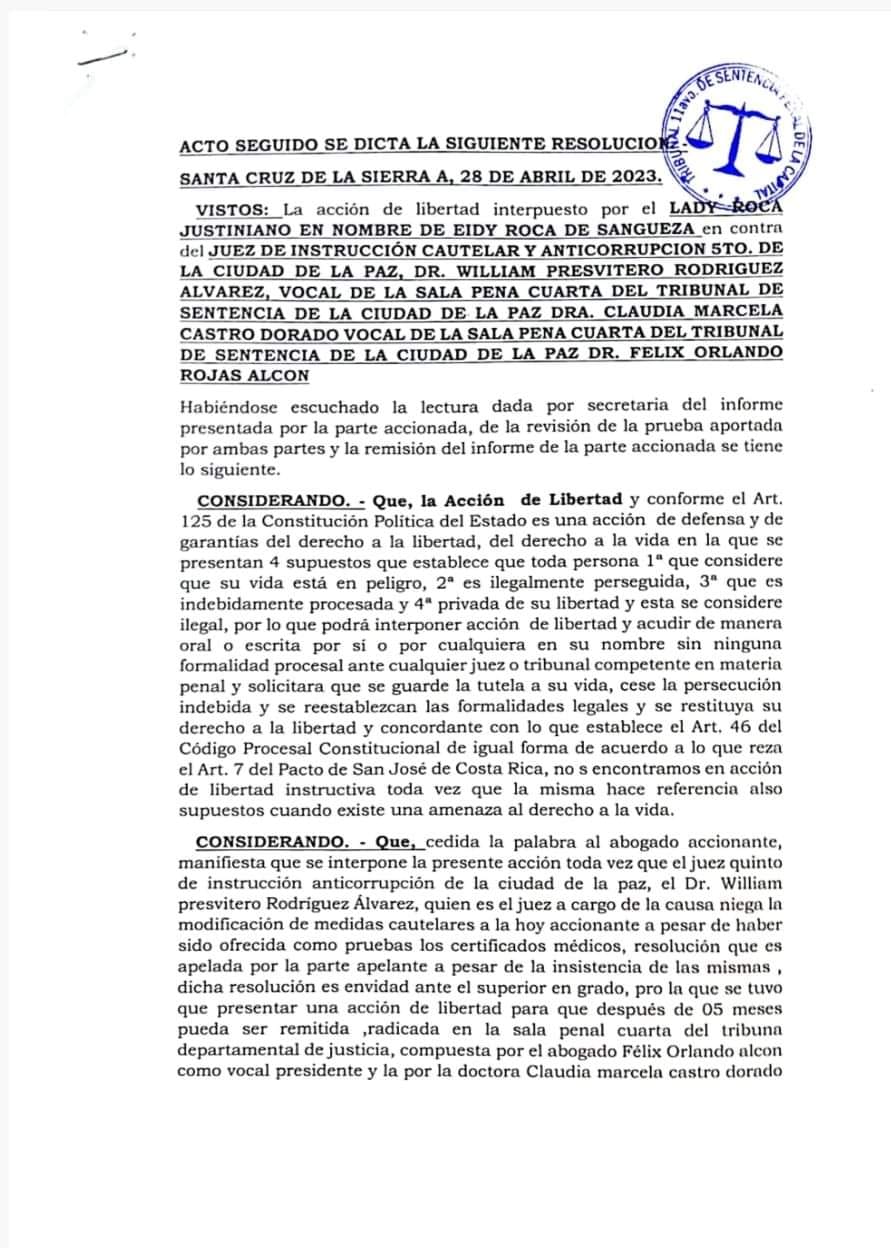 Para que el juez Previsterio Rodriguez ordene el respectivo desarraigo a la ex autoridad.
