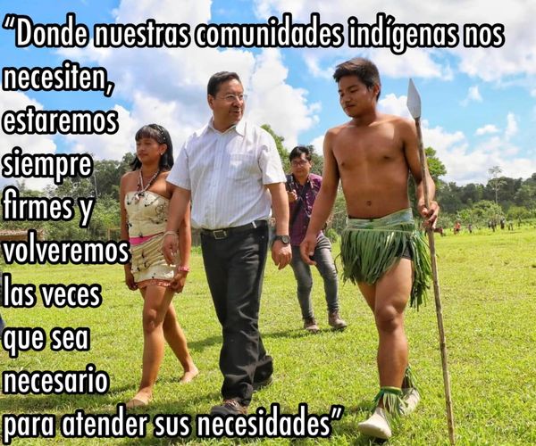 El presidente Arce con indígenas del trópico de Cochabamba. Les promete visitarlos las vec
