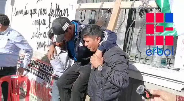 Maestros ayudan a sus compañeros que se crucificaron este lunes, como parte de las protestas frente al Gobierno. https://t.co/sb74oLfFCV