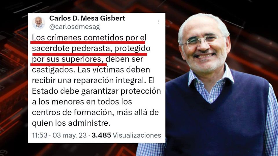 “Sacerdote pederasta protegido por sus superiores”. Carlos Mesa, contundenteCategorías NoticiasEtiquetas , Facebook, Pepe Pomacusi Periodista 03/05/202303/05/2023 Fuente: Pepe Pomacusi Periodista
