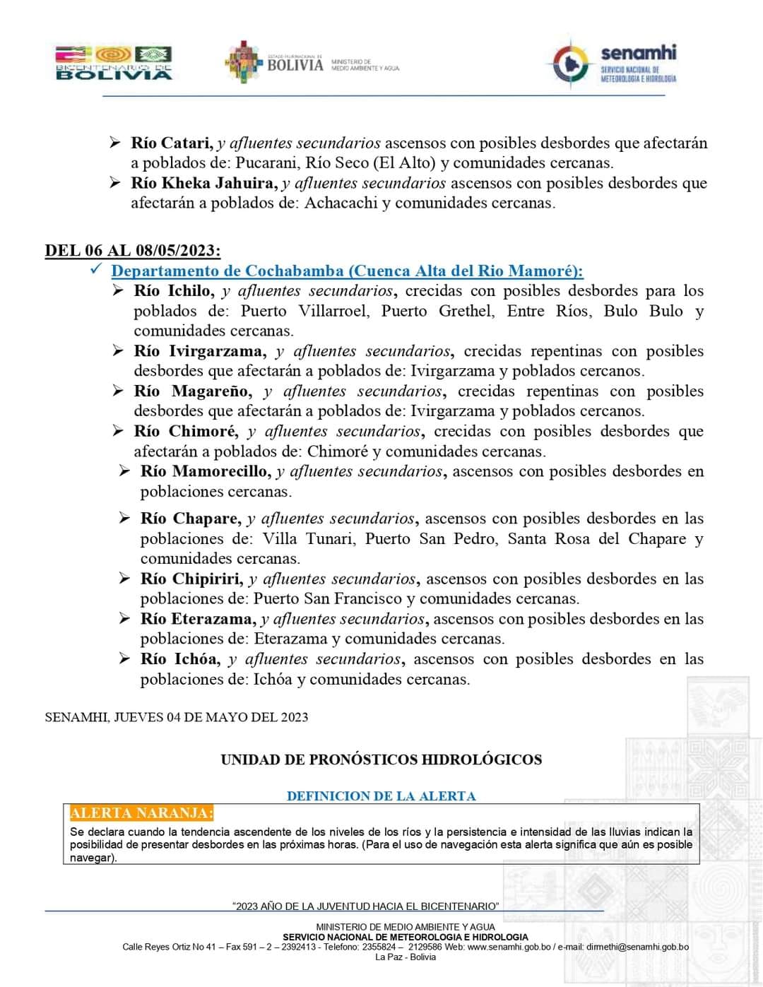 El Servicio Nacional de Meteorología e Hidrología (Senamhi) emitió alerta hidrológica por ascensos repentinos de nivel con posibles desbordes en las cuencas de los ríos: