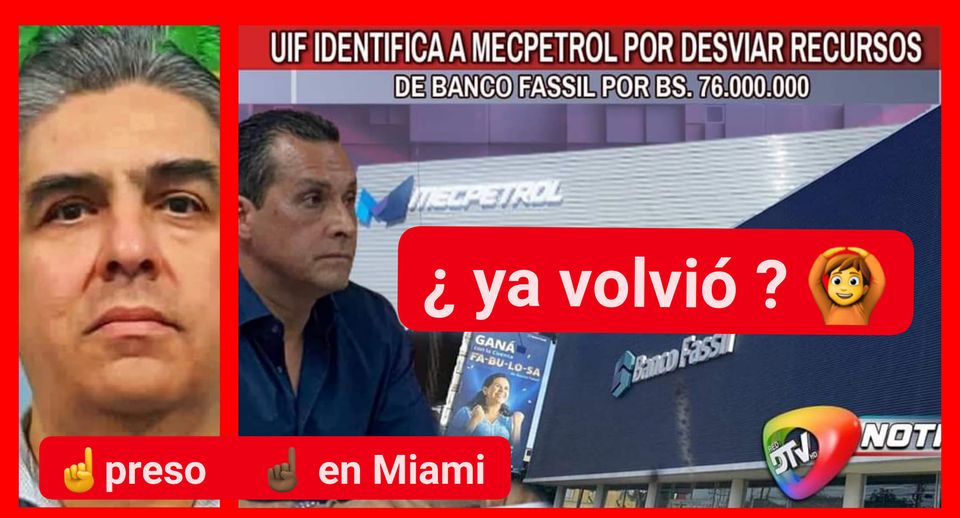 UIF identifica que Mecpetrol desvió recursos de Banco Fassil a SFG por Bs. 76.000.000 tituló DTV 📺