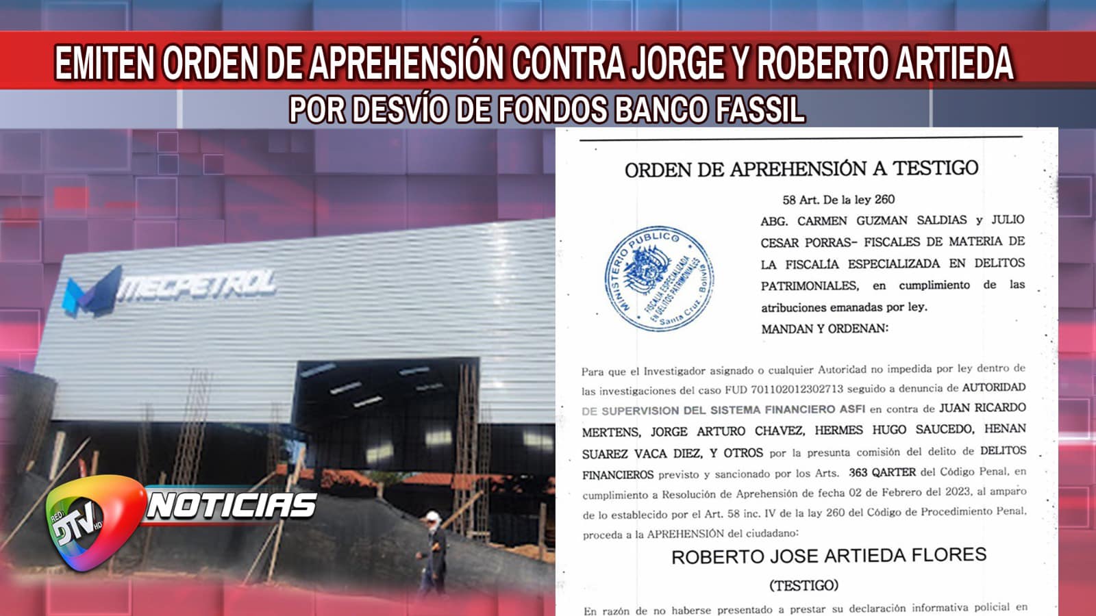 La fiscalía emitió órden de aprehensión contra los ejecutivos y propietarios de la empresa Mecpetrol, Jorge y Roberto Artieda Flores por no presentarse a declarar en dos oportunidades a declarar por el desvío de fondos de Banco Fassil a Santa Cruz Financial Group. Los hermanos Artieda figuran en un informe económico por desviar Bs. 76.000.000.-