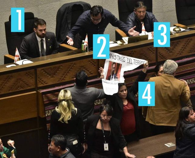 4. Todos contra todos en el plenario, con pancartas rotas, gritos y amenazas varias.