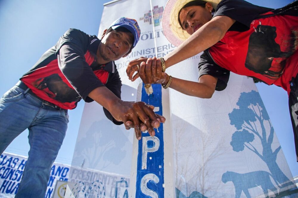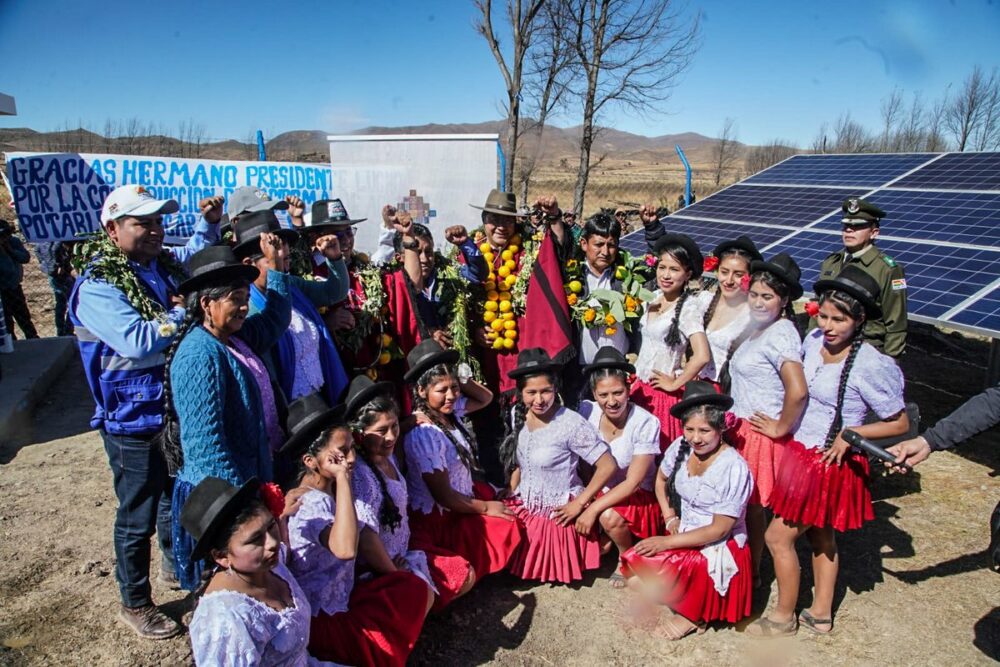 No trasladamos al municipio de Villa Charcas, #Chuquisaca, para entregar un moderno sistema de agua potable, con lo que la cobertura del líquido elemento llegó al 100% en nuestra comunidad de Huancarani Bajo. La inversión de esta importante obra asciende a Bs1,2 millones. https://t.co/bgMzgtNDvX