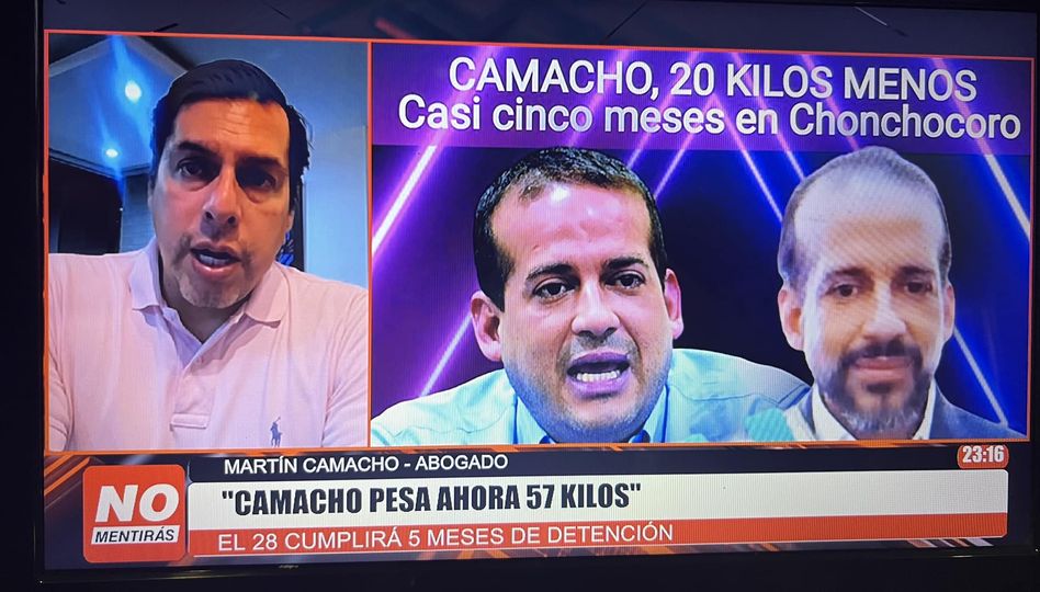 “Camacho pesa ahora 57 kilos, ha bajado 20 kilos en casi cinco meses de detención”.