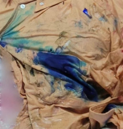 La tinta del lapicero, en la camisa del fallecido interventor. Se reventó el lapicero que tenía en el bolsillo.