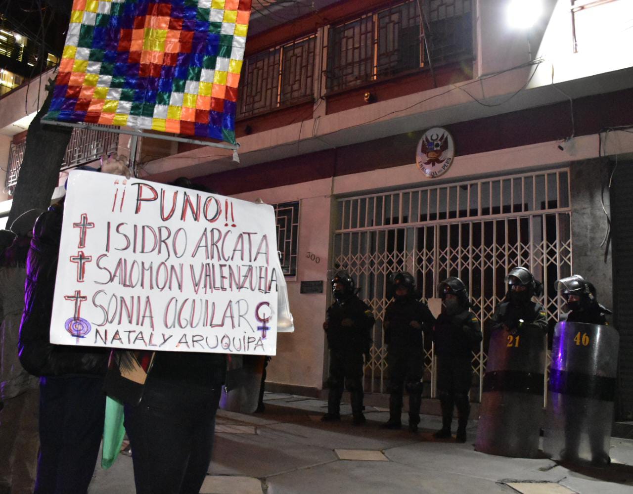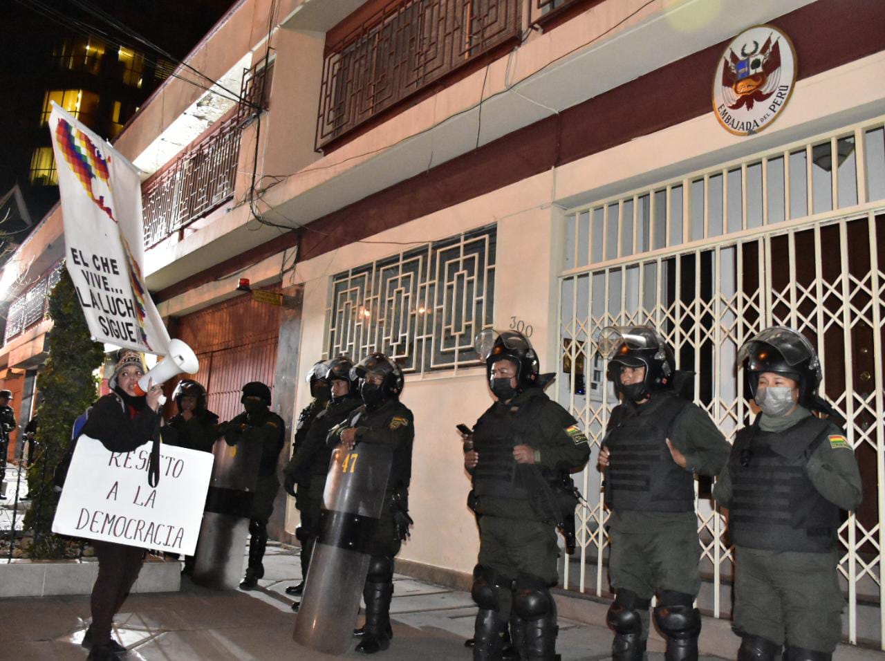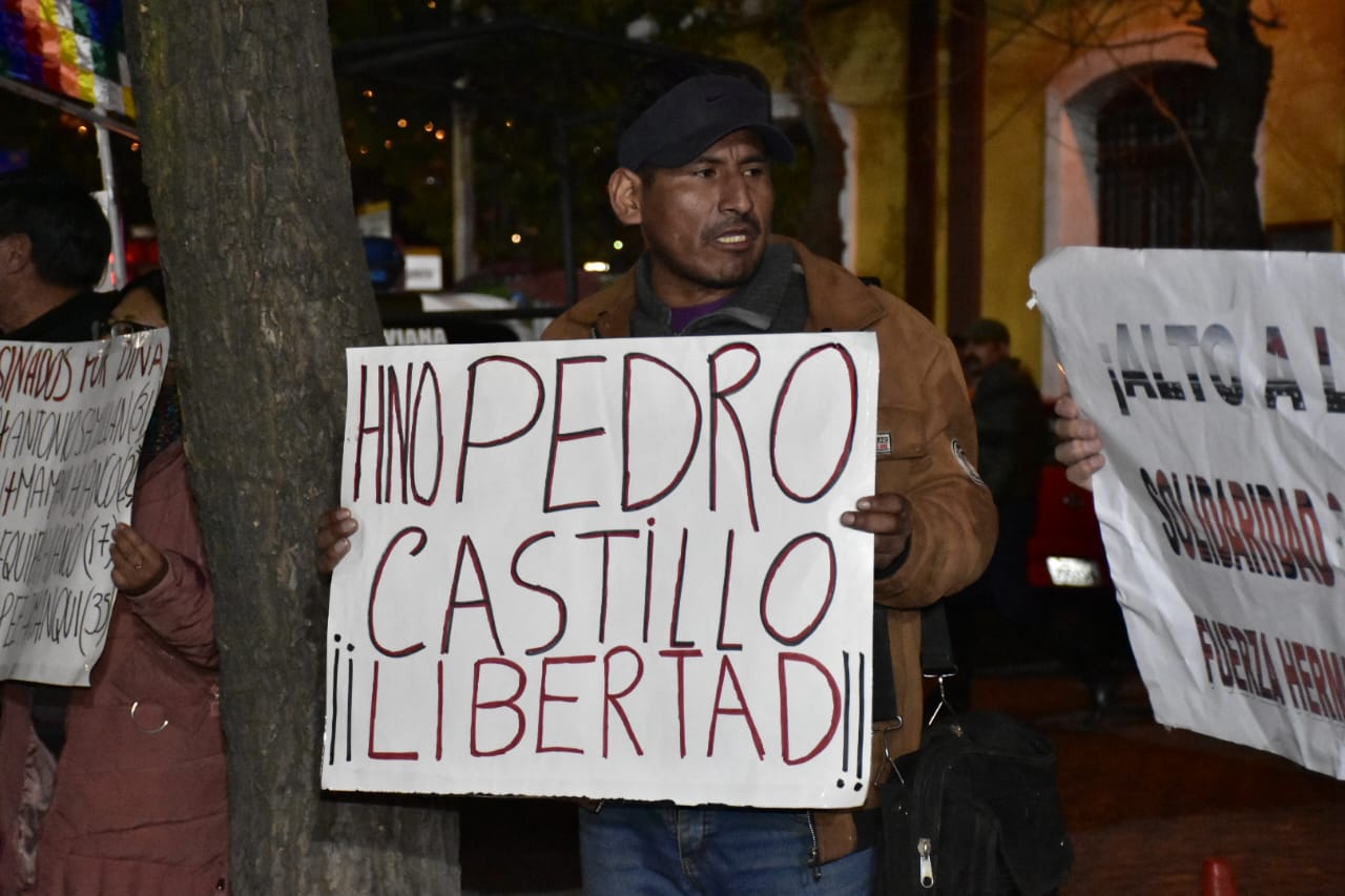 Un reducido grupo de simpatizantes del ex presidente de Perú, Pedro Castillo realizó un mini plantón afueras de la Embajada de Perú en la ciudad de La Paz, exigiendo la renuncia de la actual presidente Dina Boluarte por la crisis política que vive el vecino país desde fines de 2022.