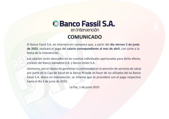 #ULTIMO Banco Fassil comienza a pagar sueldos con corte a la fecha de intervención desde este viernes 2 de junio