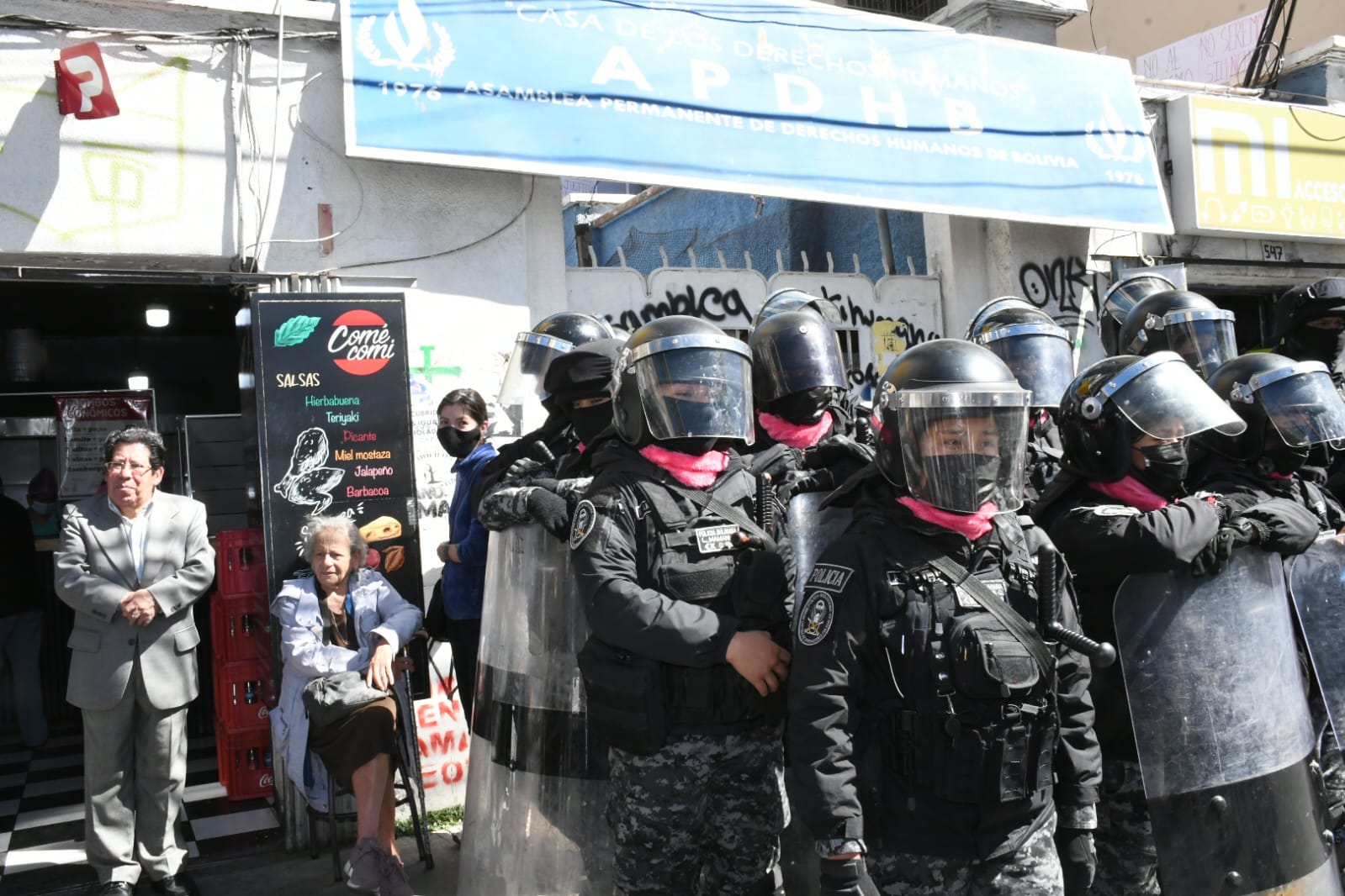 Amparo Carvajal denuncia que estan robando papeles en oficinas tomadas de la APDHB con protección de la policia