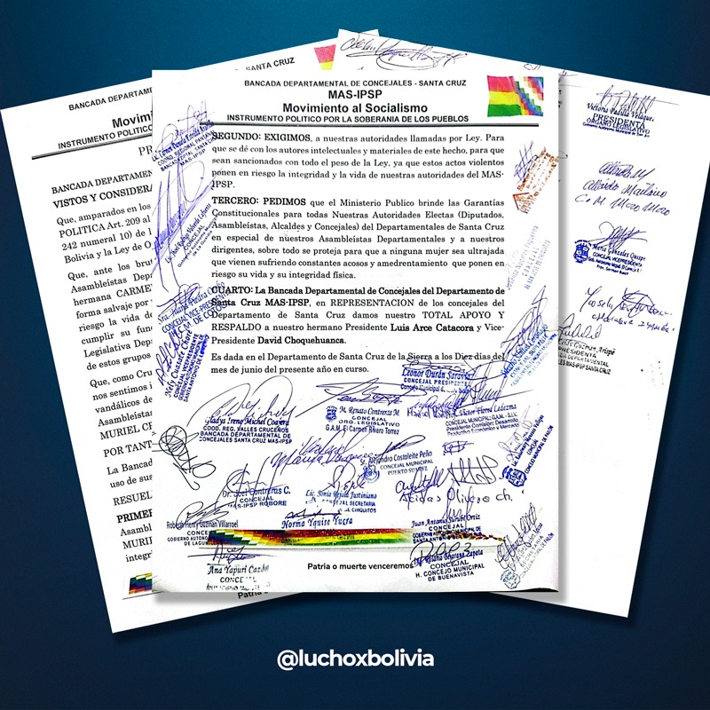 La unidad del pueblo boliviano y de nuestro Instrumento Político #MASIPSP es la mejor respuesta a la violencia y al odio promovido por grupos fascistas. Agradecemos el respaldo de la Bancada Departamental de Concejales de Santa Cruz. https://t.co/w41HAJ3x29
