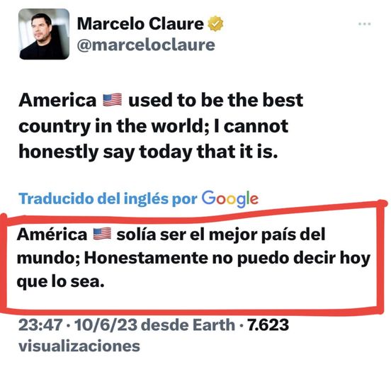 Para Marcelo Claure, EEUU ha dejado de ser el mejor país del mundo. No dice la razones de su decepción.