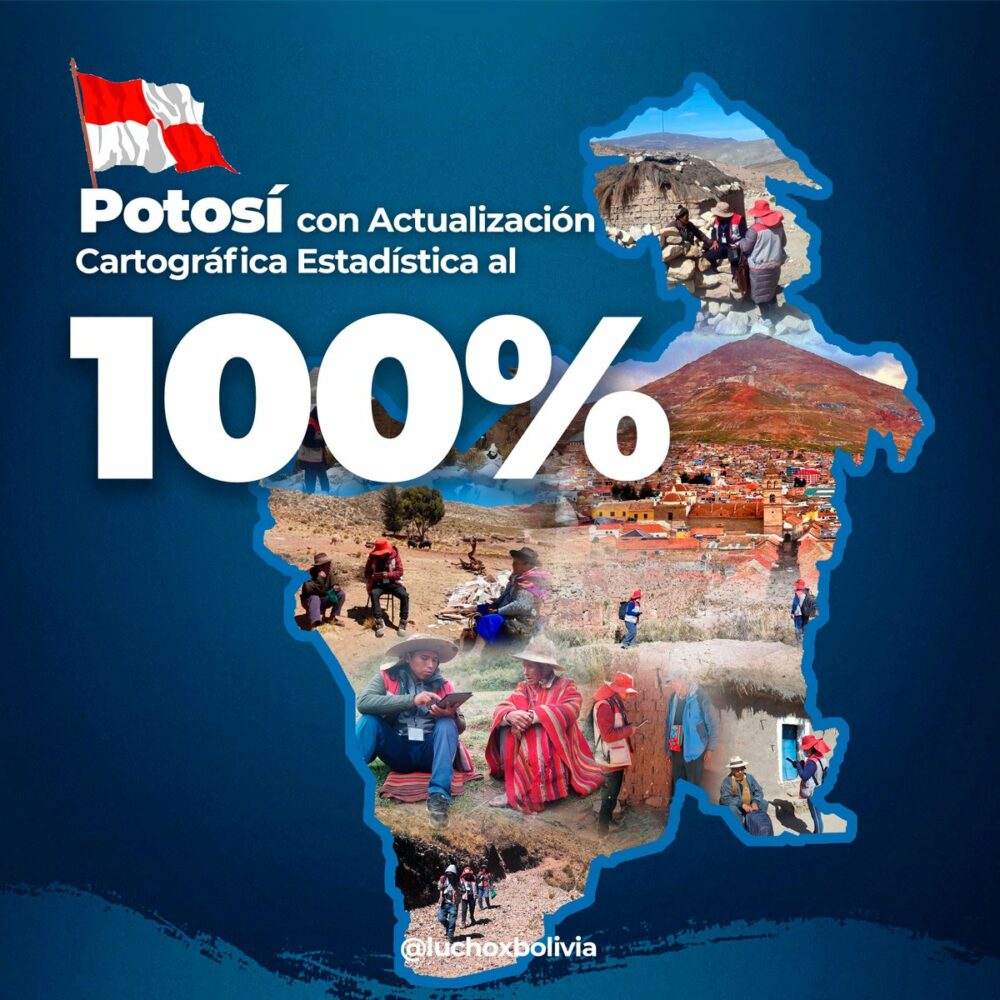 En unidad con nuestras regiones, seguimos avanzando hacia un Censo de Población y Vivienda inclusivo, técnico y eficiente. Hoy #Potosí se convierte en el quinto departamento del país en concluir con éxito al 100% su Actualización Cartográfica Estadística.