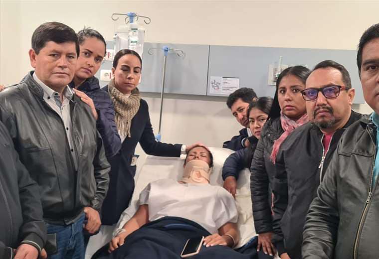 La foto figuretti. Innecesaria. Todos con caras de circunstancia. Exponiendo como trofeo a su colega lastimada. La foto que no hacía falta.