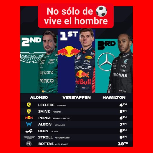 🏎 ¡ FINAL ! … ALONSO, SEGUNDO, VOLVIÓ AL PODIO 🏁 El Gran Premio 🇨🇦! volvió a mostrar a un impecable Max que igualó en número de victorias en la Fórmula 1 a Ayrton Senna. Fernando Alonso y Lewis Hamilton le acompañaron en el podio, mientras Carlos Sainz remontó hasta el quinto puesto.