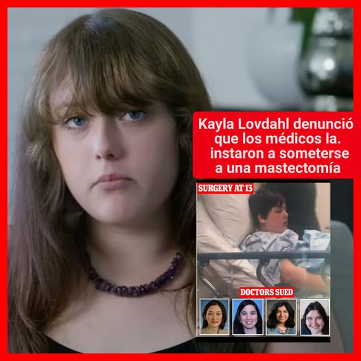 LE DESTROZARON LA VIDA 🇺🇲 Una joven demanda a médicos por extirparle los senos cuando tenía 13 años bajo la «creencia errónea» 😱 de que era transgénero. Una joven de California a la que le extirparon los senos cuando tenía 13 años porque pensó que era transgénero ahora está demandando👨🏽⚖️ a los médicos y al hospital 🥼que supervisaron el procedimiento, alegando que lo hicieron por dinero. ♦️ Kayla Lovdahl, que ahora tiene 18 años, dice que la empujaron a “tener la creencia errónea de que era transgénero” a los 11 años, después de haber estado expuesta a personas influyentes en línea, según la demanda que presentó en el Tribunal del Estado de California contra Kaiser Foundation Hospitals y cuatro médicos.