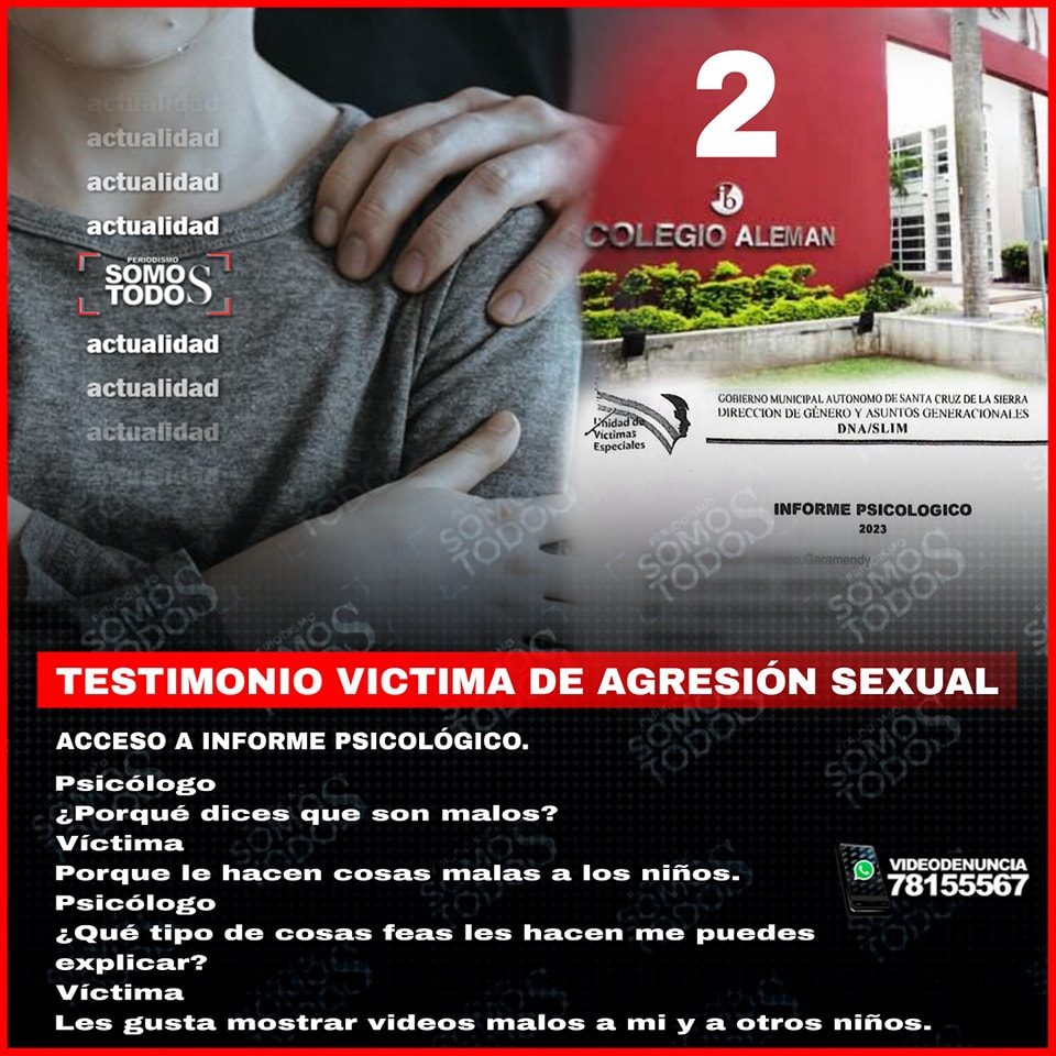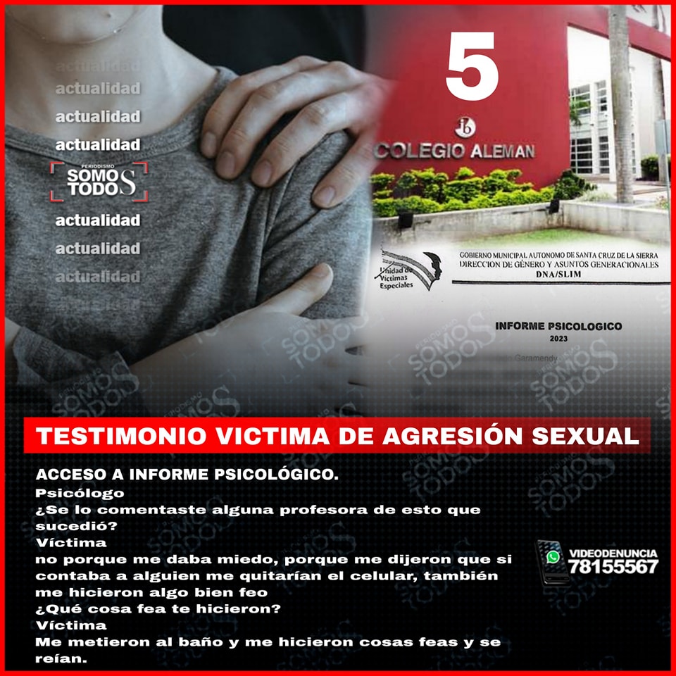 Testimonio de víctima en su entrevista Psicológica, revela que hay dos víctimas de agresión sexual a manos de cinco estudiantes del colegio Alemán, que usaban máscaras para evitar ser reconocidos.
