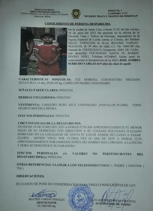 #Loúltimo Menor desaparecido hace 6 días en Yapacani es encontrado sin vida