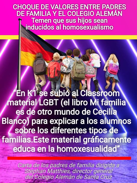 Padres de familia del Colegio Alemán piden retirar un libro de Kinder. Dicen que induce al homosexualismo. Este es el texto de una carta que le envían al director del colegio.